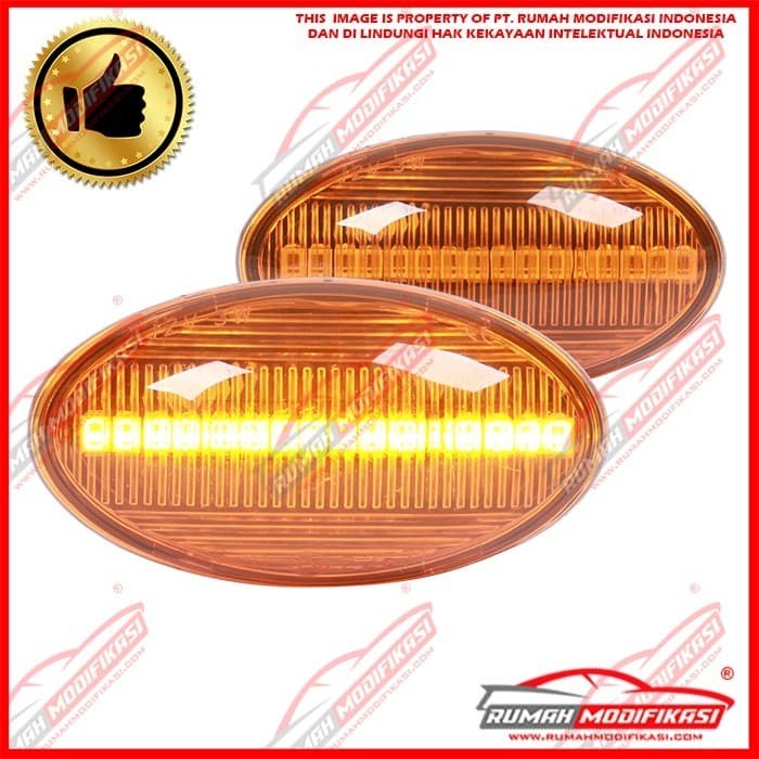 1. Sistem Ganti 2. Warna Amber 3. Plug n Play 4. Fungsi : Side Lamp 5. Style : LED + Sequential Signal / Running Signal 6. Merk : RM 7. Garansi : 3 Bulan